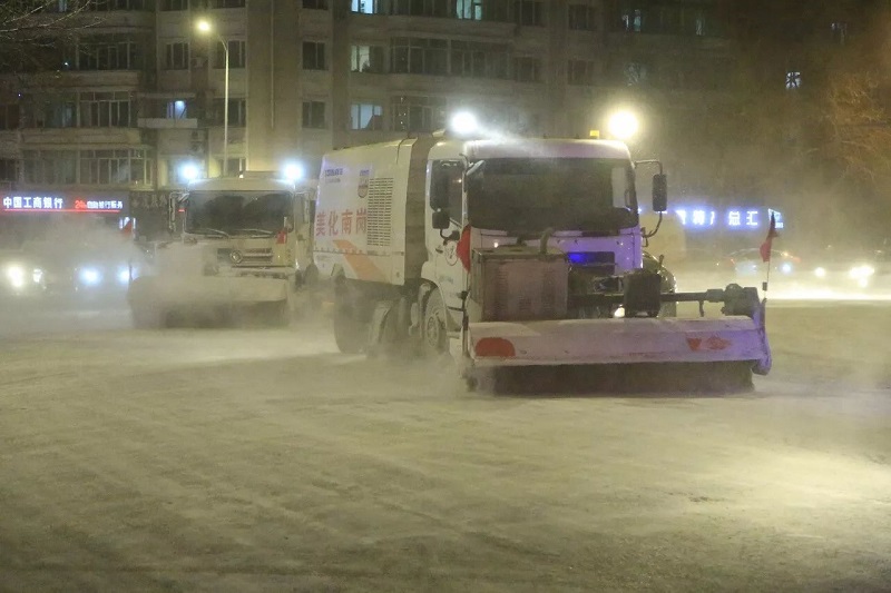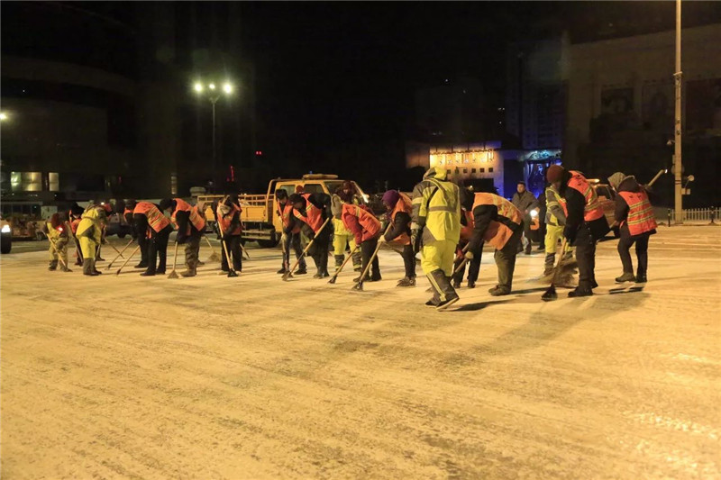 28日傍晚,我市迎来急促降雪,路面迅速被降雪覆盖。为确保第二日交通早高峰道路顺畅,南岗区快速反应立即启动清冰雪预案,按照“以雪为令、即下即清、边清边运、重点突出”的清冰雪长效机制,紧急出动大型机械和环卫工人对主干街路、背街背巷及居民庭院,连夜进行精细化清扫作业,以确保道路积雪不压实、不结冰。
