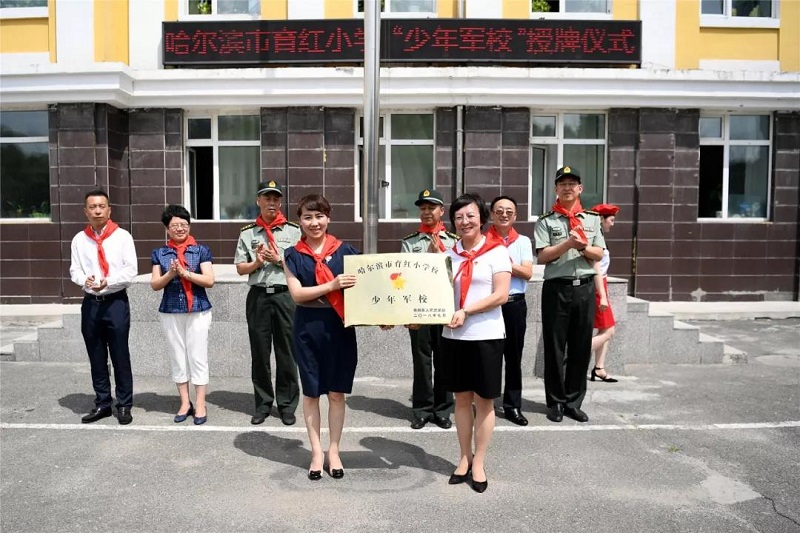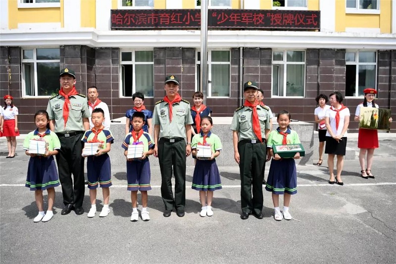 仪式上,“少年军校”进行了快板书、军体拳、旗语操等形式的汇报表演。区委常委、宣传部长陈琳向育红小学授予了“少年军校”牌匾,哈尔滨市警备区政治工作处主任田志国,区委常委、武装部政委陈常青,区武装部部长马海涛向“少年军校”赠送了国防教育光盘和图书。育红小学校长姚颖及家长代表、学生代表作表态发言。仪式结束后,与会领导参观了学校军事厅、小军营、红色教育长廊、校史馆、科技馆、航模基地、图书馆等国防教育阵地,对“少年军校”发挥特色教育作用给予了充分的肯定。